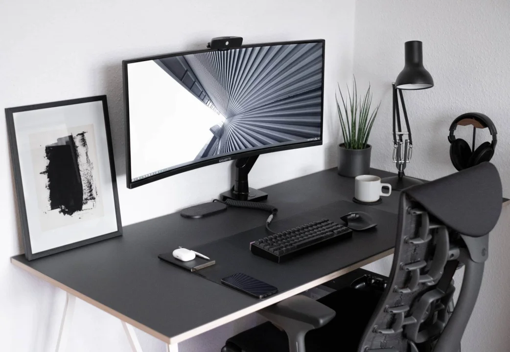 Ev ofis veya çalışma odasında monokrom dekorasyon odaklanmayı kolaylaştırıyor. Siyah çalışma masası ile beyaz ergonomik sandalye, gri halı ve sade soyut tablolarla çok temiz bir ortam oluşuyor. Duvarlara asılan siyah-beyaz geometrik tablolar ise hem ilham veriyor hem de dağınıklığı önlüyor.
