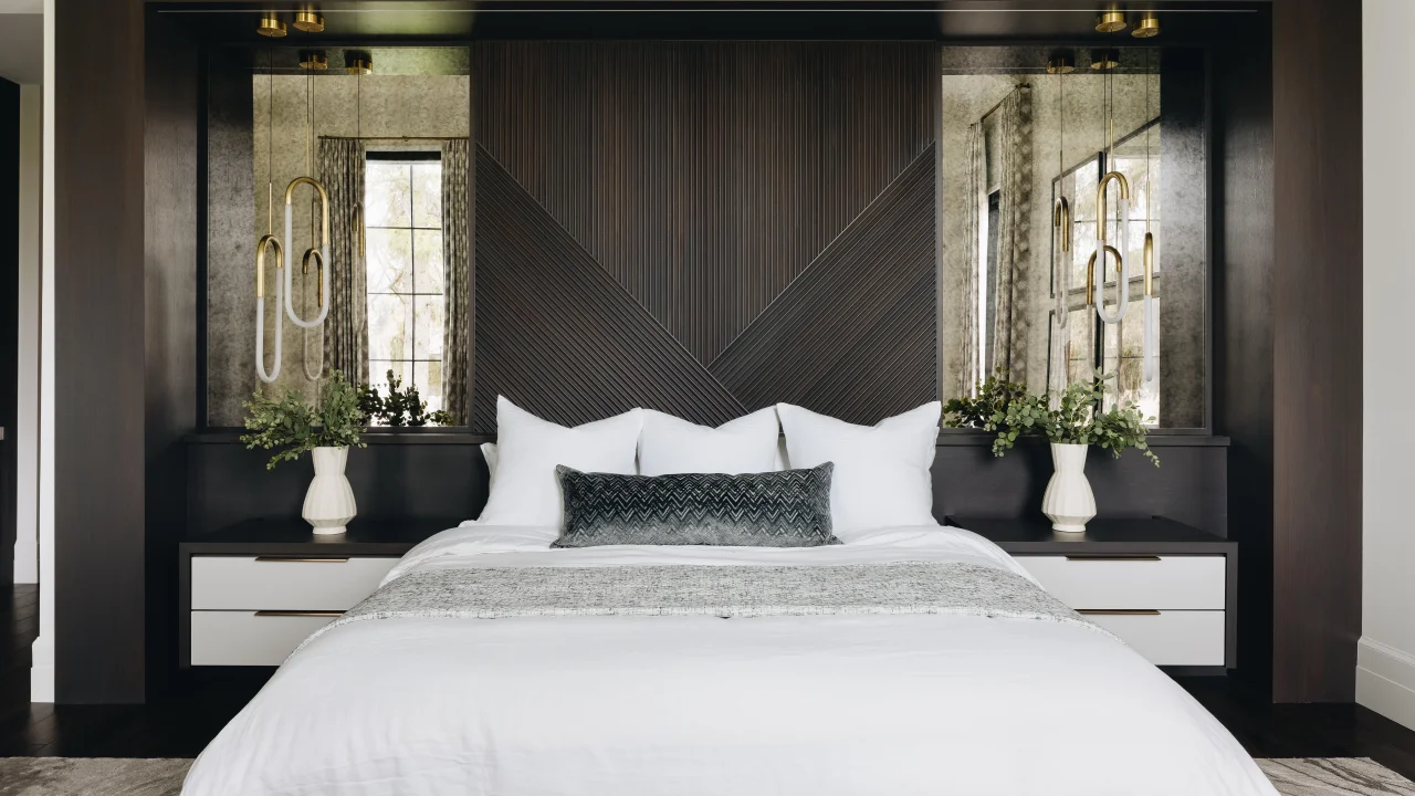 Yatak odasında monokrom dekorasyon adeta bir spa etkisi yaratıyor. Tamamen beyaz bir yatak takımı ile siyah accent duvarı birleştirmek en popüler yaklaşımlardan. Veya tam tersi, koyu gri yatak başlığı ve beyaz nevresimlerle hafif bir kontrast yakalayabilirsiniz. Büyük aynalı gardıroplar ve sade siyah metal lambaderler odayı hem ferah hem lüks gösteriyor. Geometrik desenli siyah-beyaz yastıklar ve keten perdeler ise yumuşak bir dokunuş katıyor.